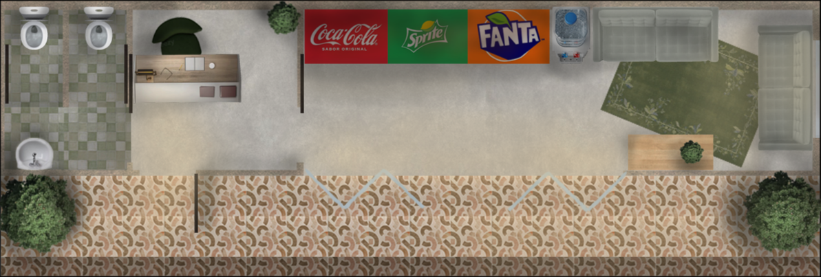 - The service pod is located at the most visible part of the land among all accommodation pods. This'll allow patrons to see the space's layout when they step in for check-in.